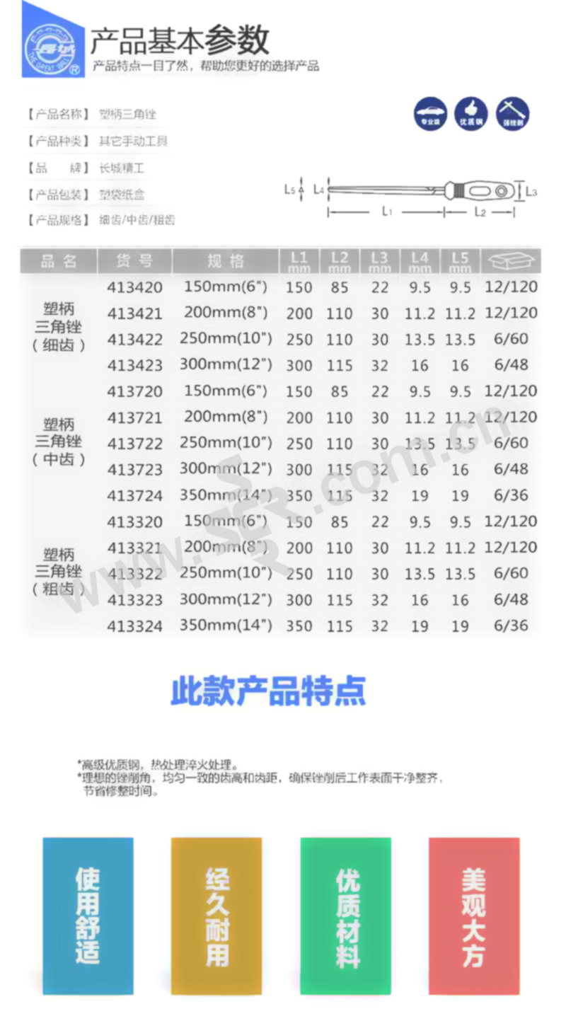 GREATWALL/长城精工 塑柄细齿系列三角锉 413420 1把