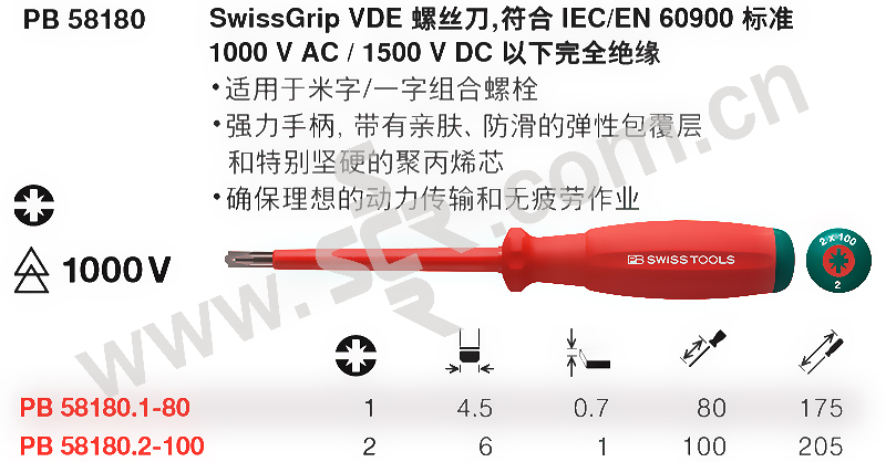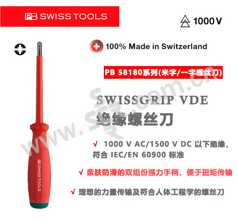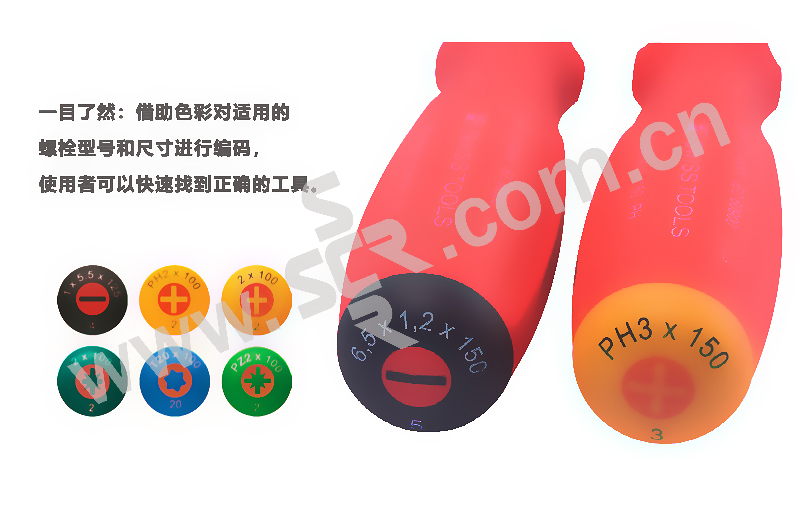 ·VED双组份手柄,带有亲肤、柔软的弹性包覆层和非常坚硬的聚丙烯芯可将手动产生的高扭矩轻松传递给螺栓,手柄经过VDE测试可在1000V一下完全绝缘,整体延伸的绝缘刀杆.
