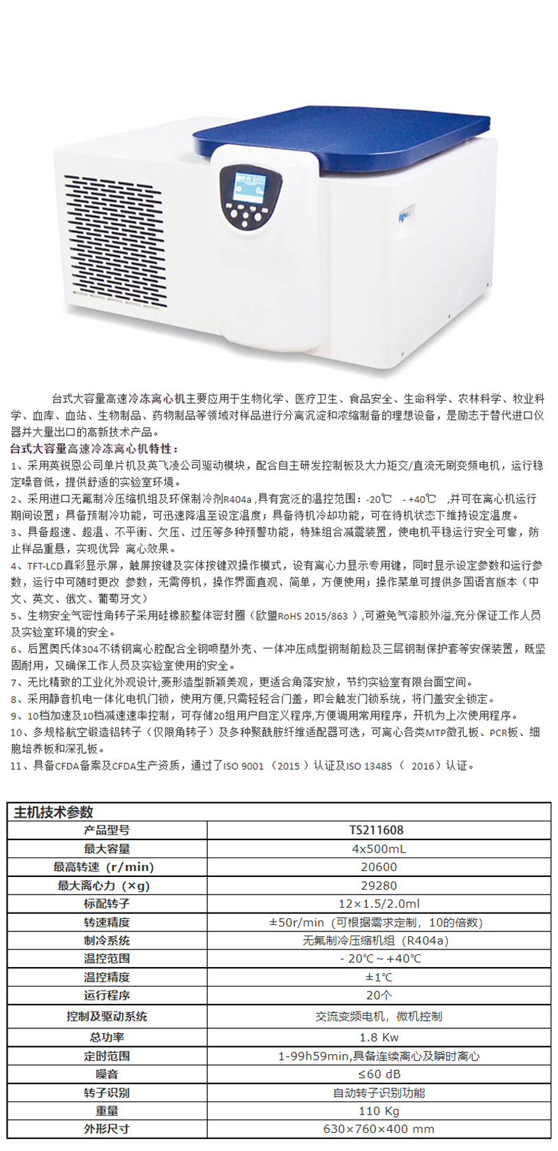 H62708 TS211608 20600rpm 29280×g 4×500ml 94094.00