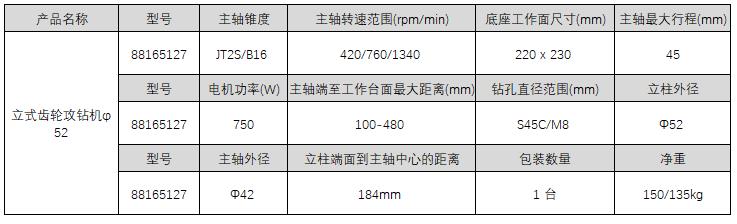 A37957 88165127 S45C/M8 mm Φ52 45mm 184mm 100-480 mm - JT2S/B16 420/760/1340 rpm/min - - 220×230 mm 750w - 150/135kg 1 台 Φ42 40900.00