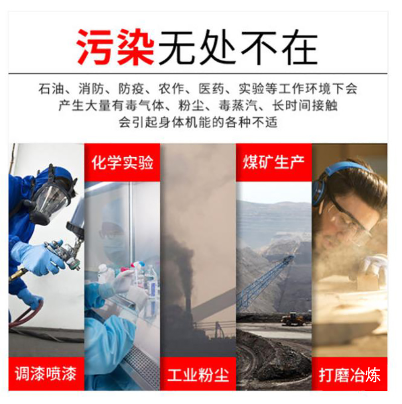 面罩×1过滤盒×2过滤棉×2过滤盖×2