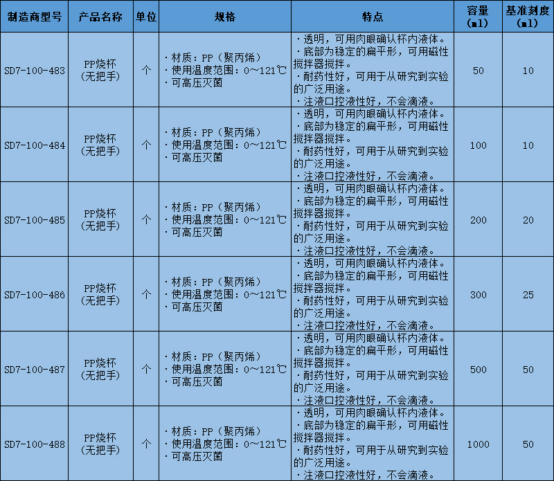 SLAMED PP烧杯(无把手) 1000ml 基准刻度50ml SD7-100-488