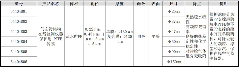 气态污染物 在线监测仪器保护用 PTFE滤膜
