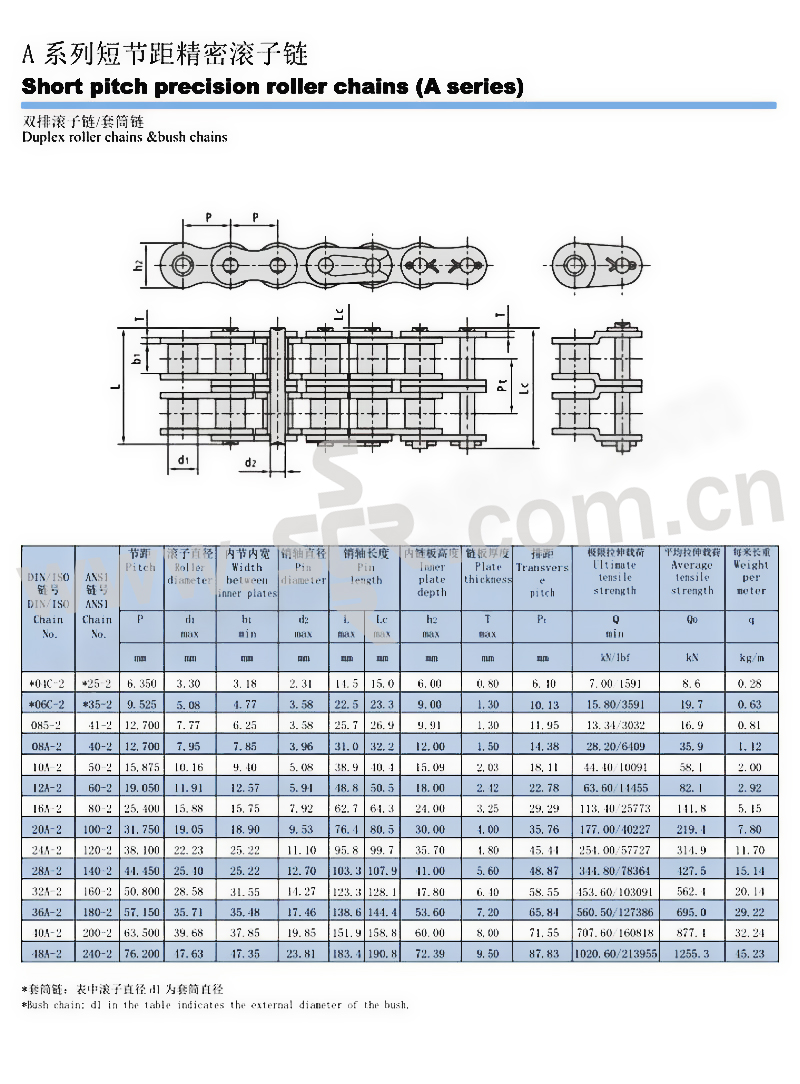GETE/哥特 A系列短节距双排滚子链 24A-2×40L 表面抛丸 1.524m 1条