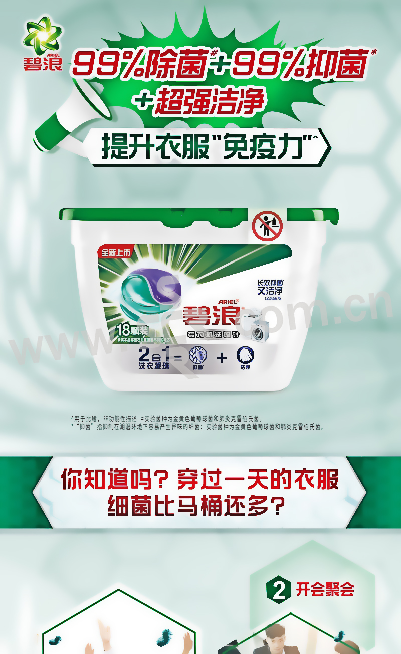 ARIEL/碧浪 除菌更抑菌海洋洗衣凝珠 6903148304440 18颗 1盒