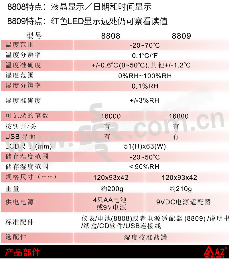 AZ/衡欣 温湿度记录仪 AZ8808 液晶显示 1台