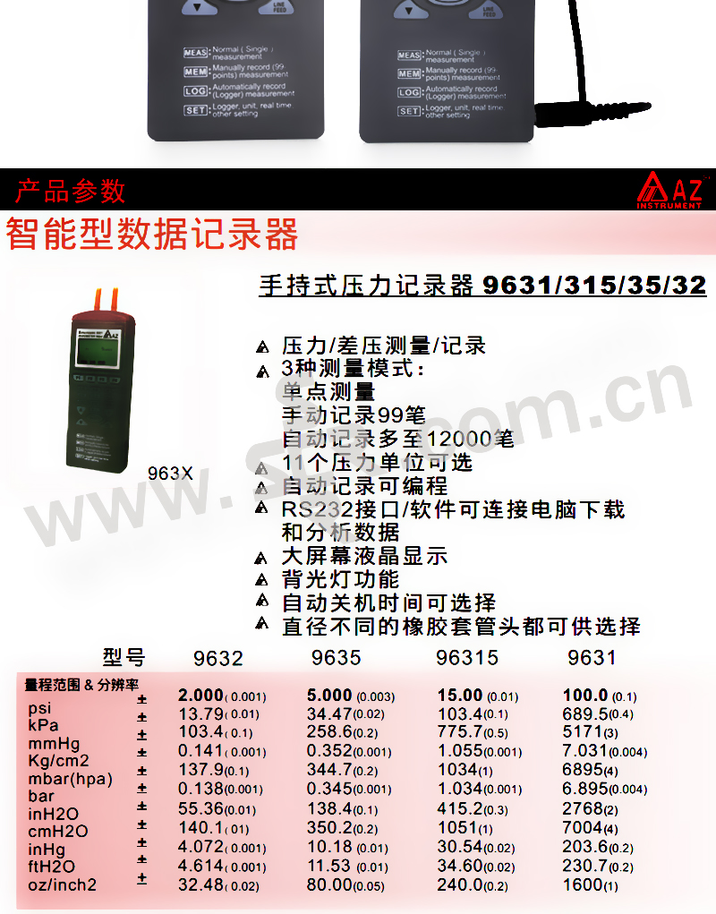 AZ/衡欣 压力记录器 AZ9631 ±100psi 1台
