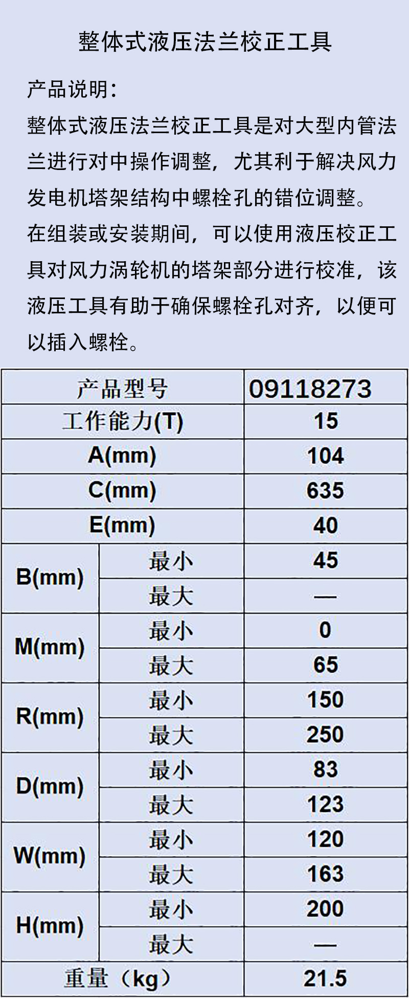 整体式液压法兰校正工具是对大型内管法兰进行对中操作调整,尤其利于解决风力发电机塔架结构中螺栓孔的错位调整.