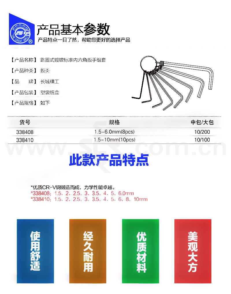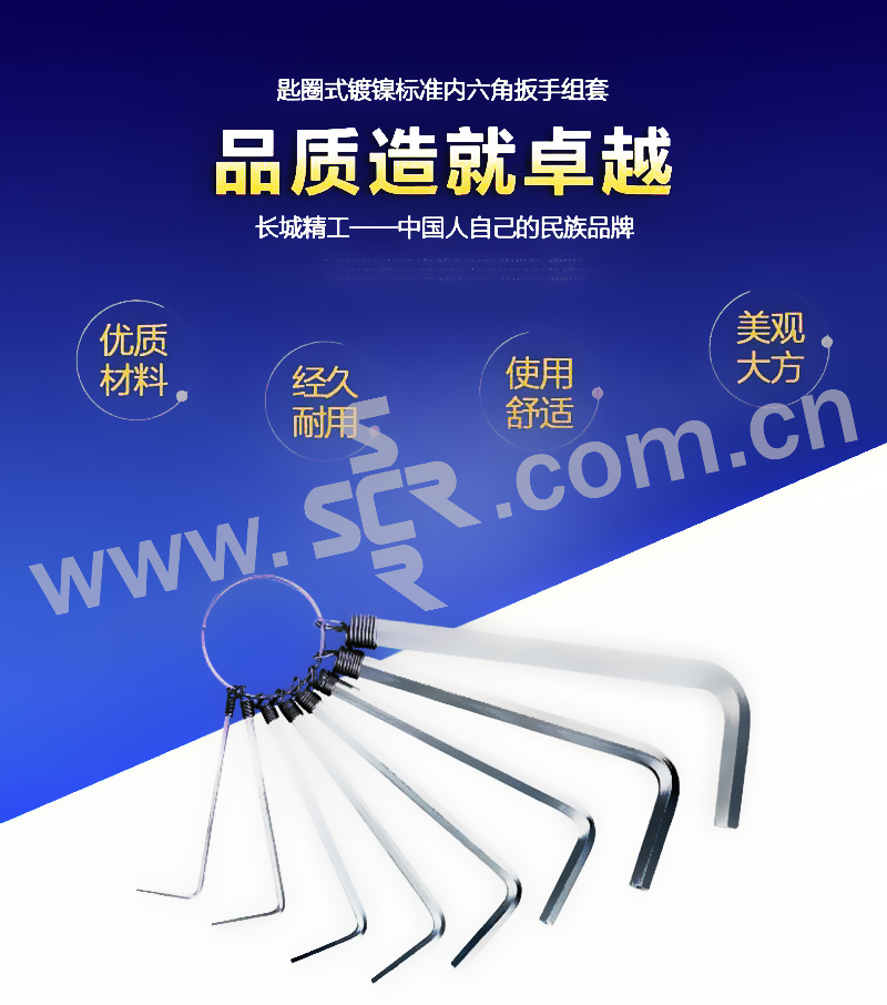 GREATWALL/长城精工 匙圈式系列镀镍标准内六角扳手组套 338408 1.5~6mm 1套