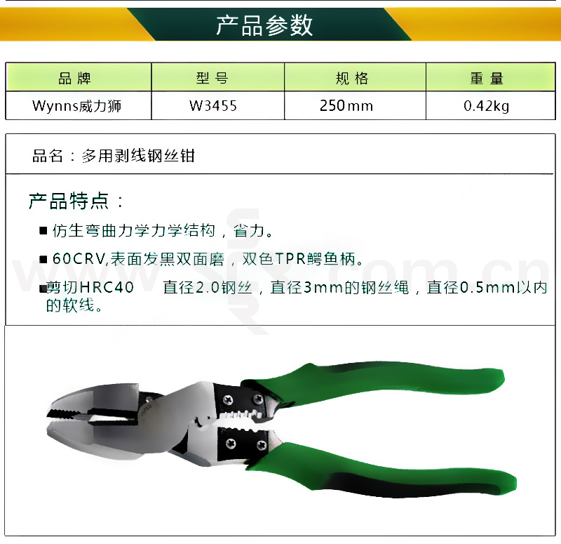 WYNNS/威力狮 多功能剥线钢丝钳 W3455 1把