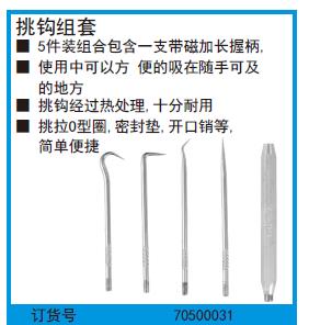 ·5件装组合包含一支带磁加长握柄,使用中可以方便的吸在随手可及的地方,挑钩经过热处理,十分耐用。挑拉O型圈,密封垫,开口销等,简单便捷