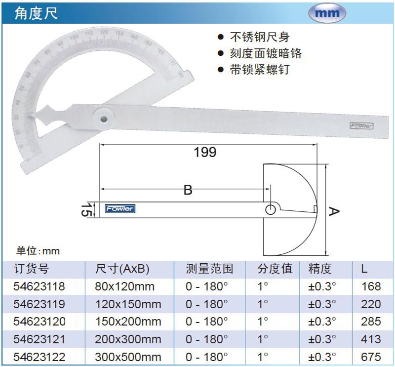 FOWLER 角度尺 54623122 300×500mm