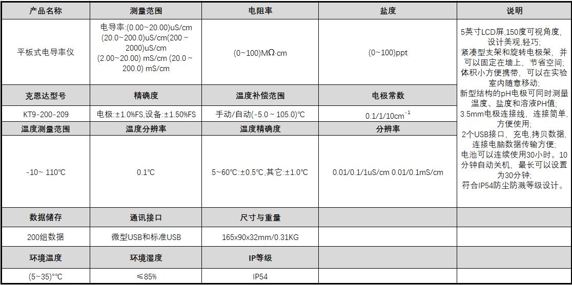 ·5英寸LCD屏,150度可视角度,设计美观,轻巧;紧凑型支架和旋转电极架,并可以固定在墙上,节省空间;体积小方便携带,可以在实验室内随意移动; ·新型结构的pH电极可同时测量温度、盐度和溶液PH值;3.5mm电极连接线,连接简单,方便使用;2个USB接口,充电,拷贝数据,连接电脑数据传输方便; ·电池可以连续使用30小时。10分钟自动关机,最长可以设置为30分钟;符合IP54防尘防溅等级设计。