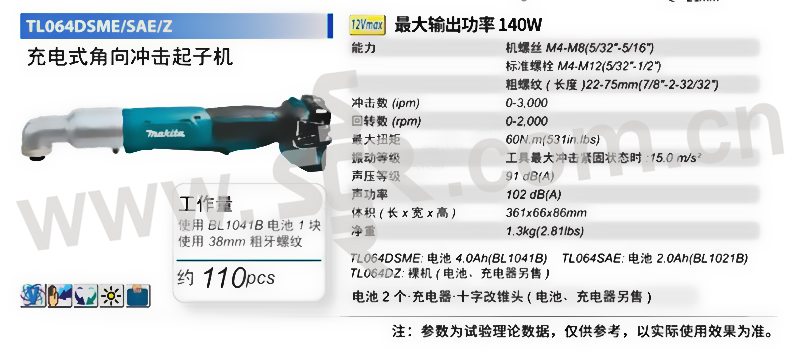 MAKITA/牧田 充电式角向冲击起子机 TL064DSME 包含两电一充 12V/4Ah 1台