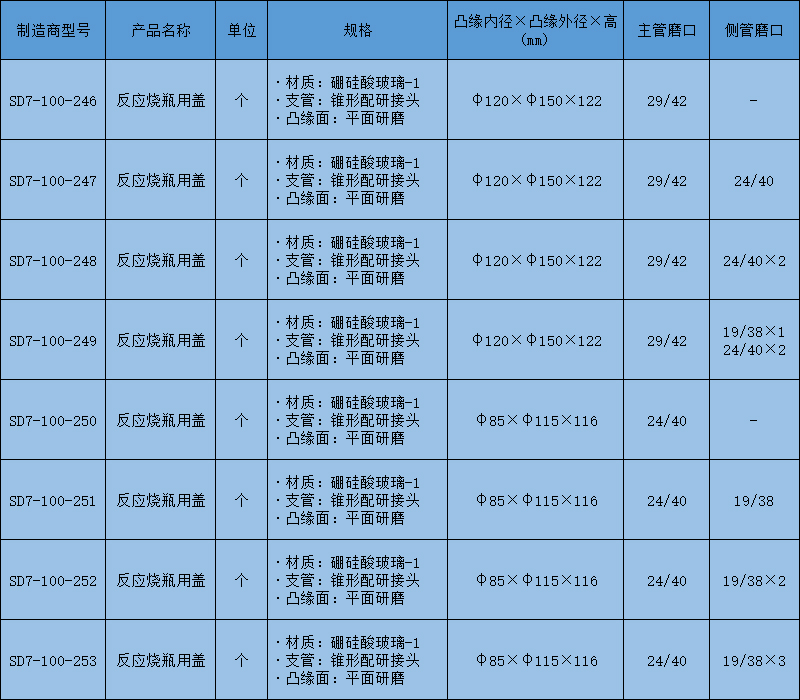 SLAMED 反应烧瓶用盖 双口 主管24/40 副管19/38 SD7-100-247