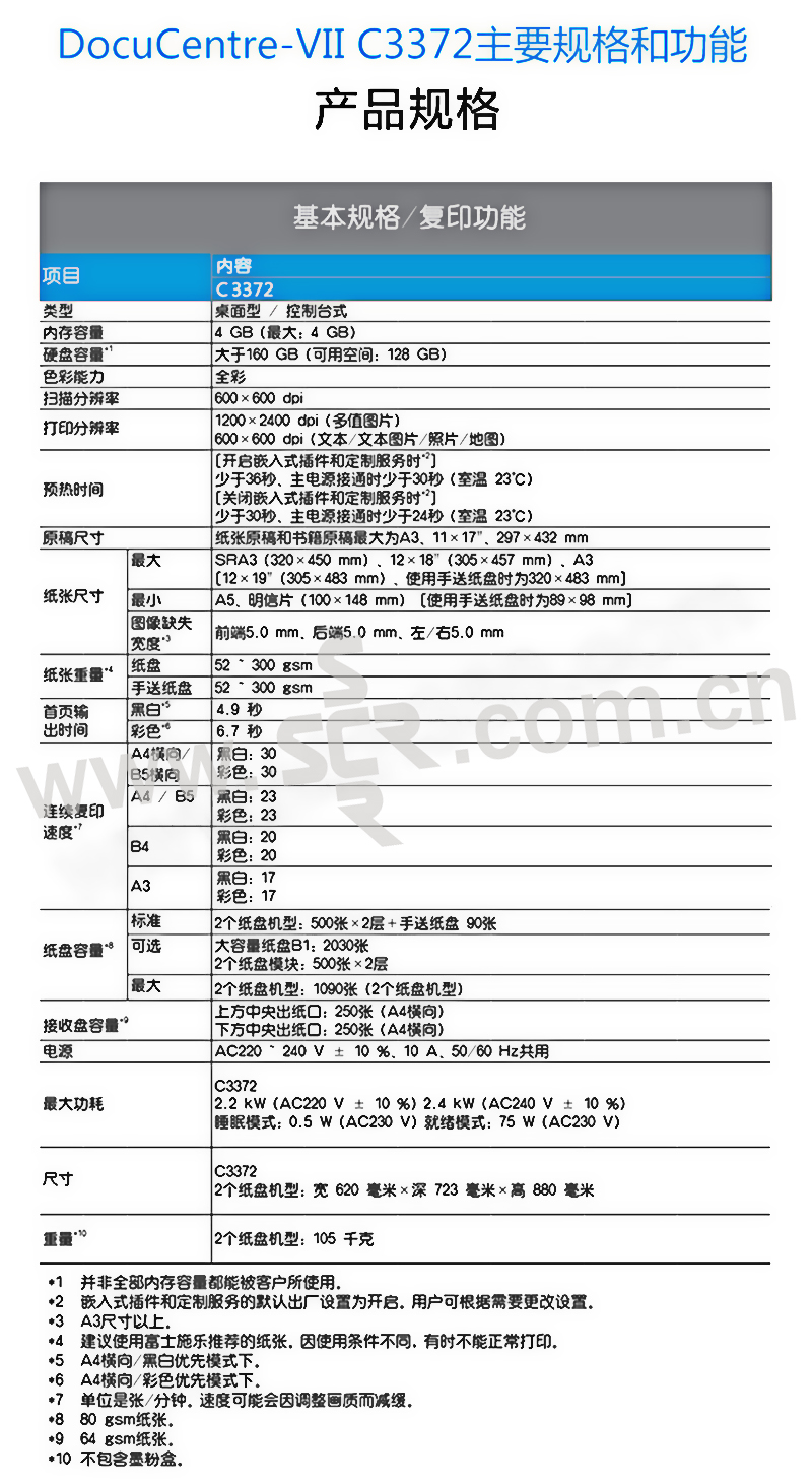 FUJI XEROX/富士施乐 A3彩色激光一体机 VII C3372 打印/复印/扫描 双纸盒+输稿器+工作台+C3小册子装订器 1台