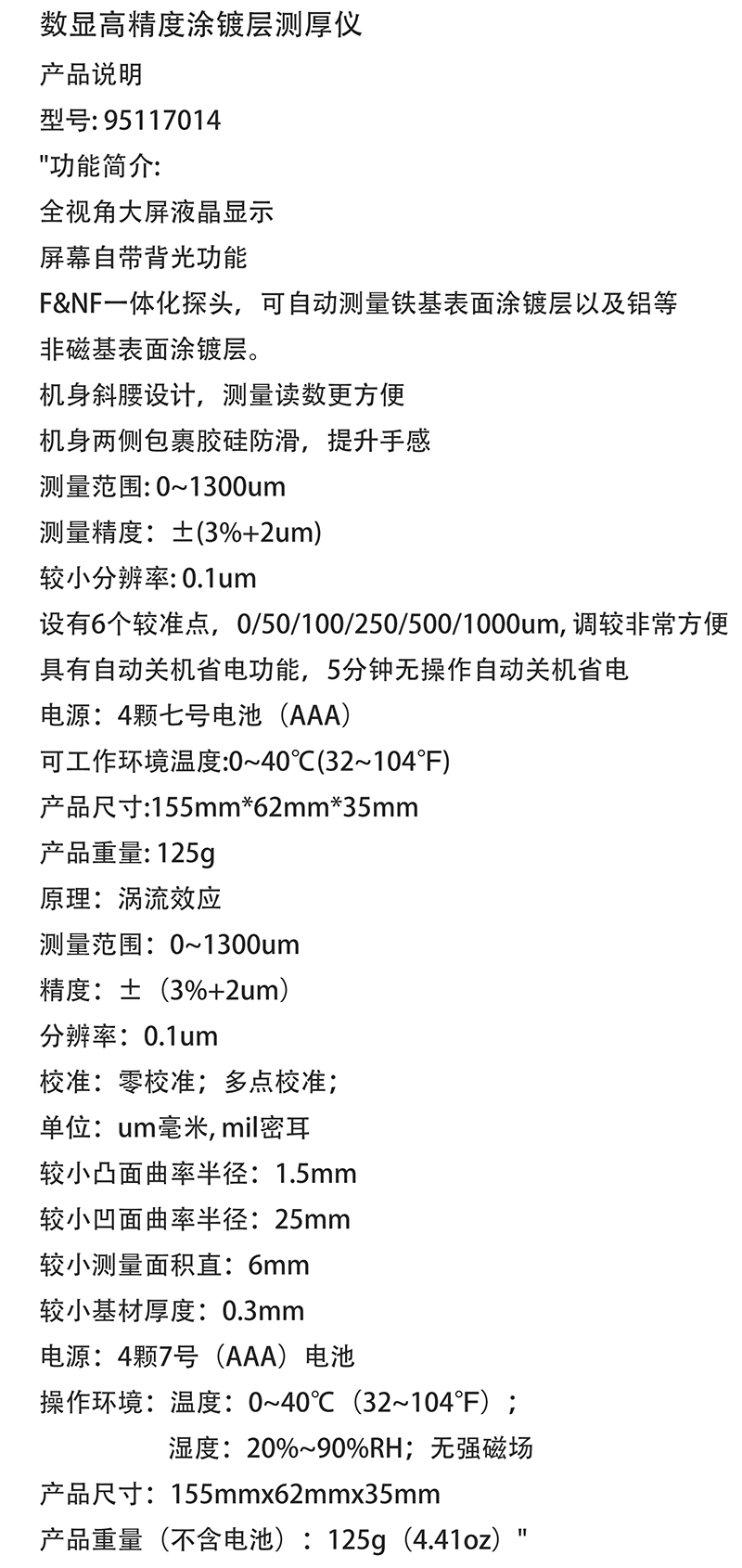数显高精度涂镀层测厚仪 95117014 155×62×35mm 1台