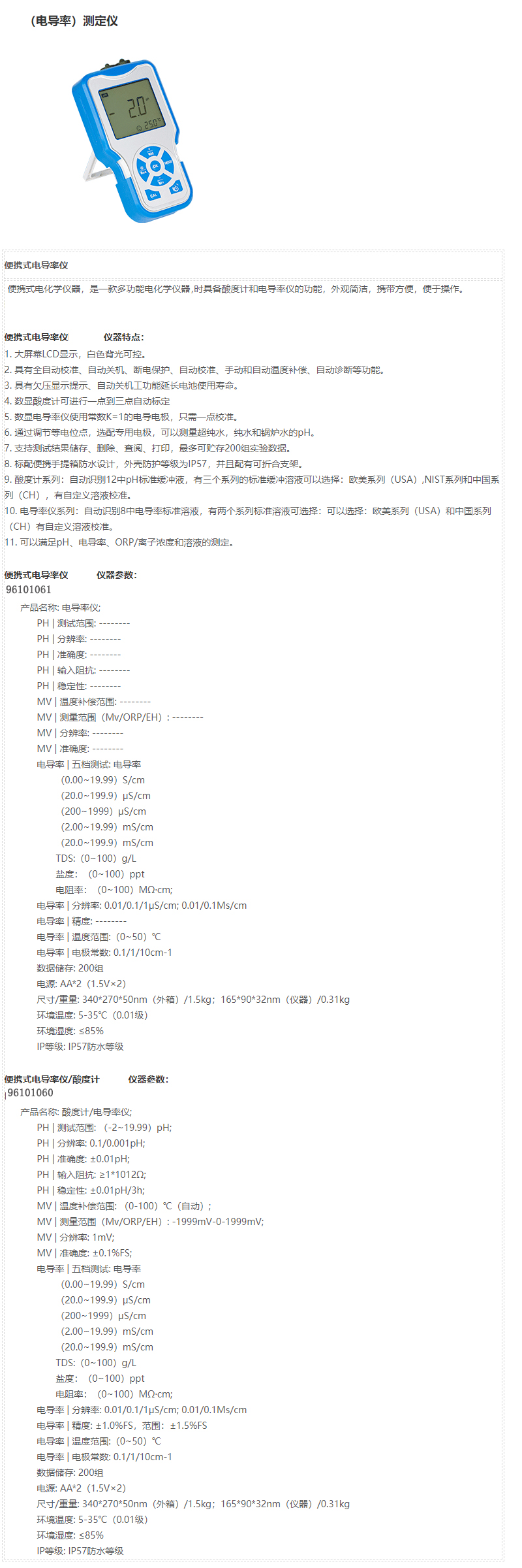 ·符合IP57防水等级,在恶劣环境下也能使用 ·特制的防水性插口,可接入四种不同的电极