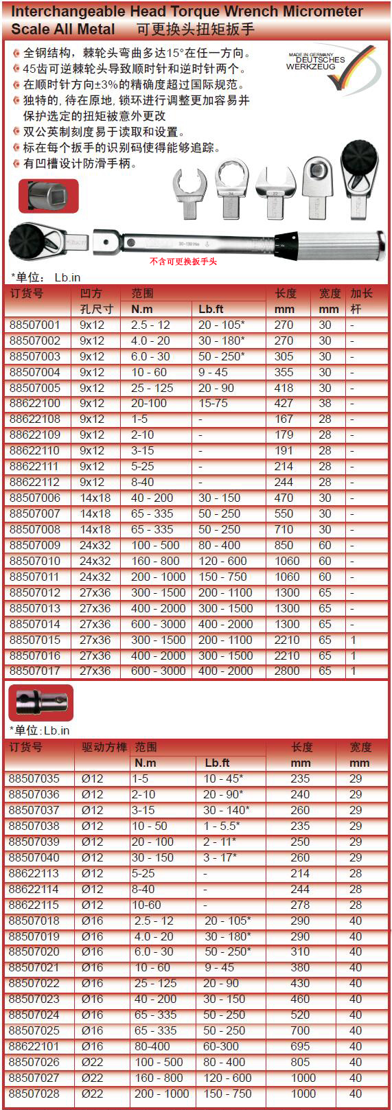 ·全钢结构,棘轮头弯曲多达15°在任一方向。