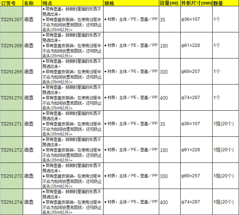 · 带有壶盖,倾倒时里面的东西不易洒出来。 · 带有壶盖安装销,在使用过程中不会为如何放置而困扰,还可防止丢失(35ml以外)。