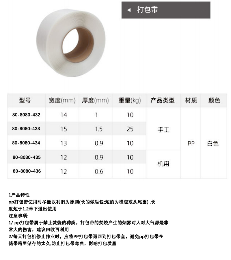 A41089 80-8080-436 机用 PP 12mm 0.6mm 10kg 321.21