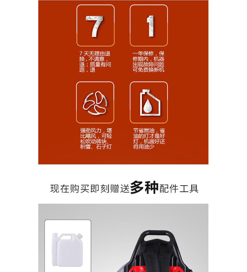 ·精选优质材质,硬度高,大功率,性能佳,很耐用,节能省油,启动简单。