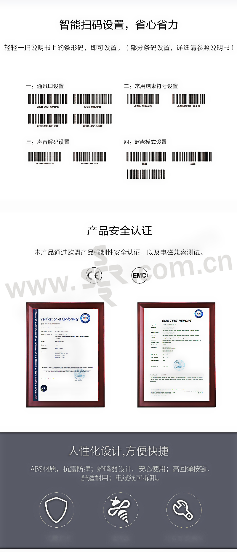 DELI/得力 二维红光有线扫描枪 14883 黑色 USB口 1台