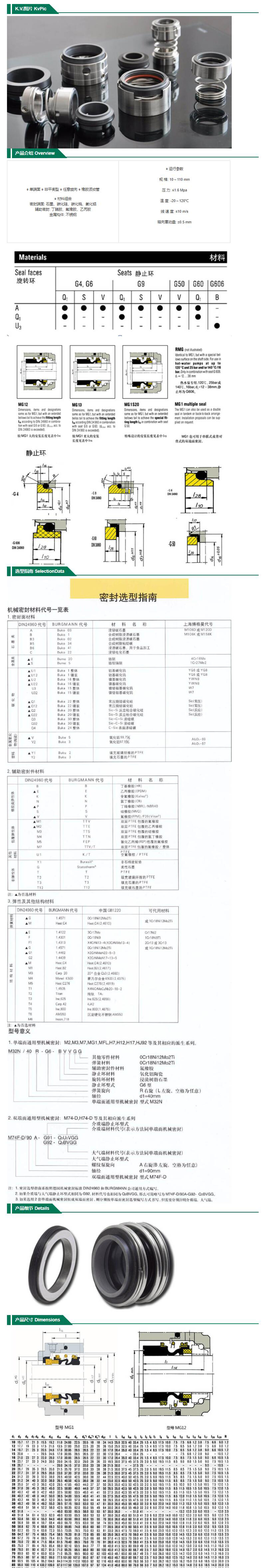 ·单端面、非平衡型、任意旋向、橡胶波纹管、材料组合 ·密封端面:石墨、碳化硅、碳化钨、氧化铝 ·辅助密封:丁腈胶、氟橡胶、乙丙胶 ·金属构件:不锈钢 ·运行参数 ·规格:10~110mm ·压力:≤1.6Mpa ·温度:-20~120℃ ·线速度:≤10m/s ·轴向窜动量:±0.5mm