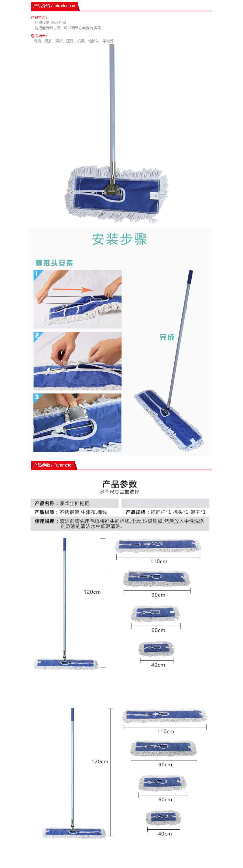 ·纯棉线条,吸水性强 ·拖把盘拆卸方便,可以调节方向旋转,实用