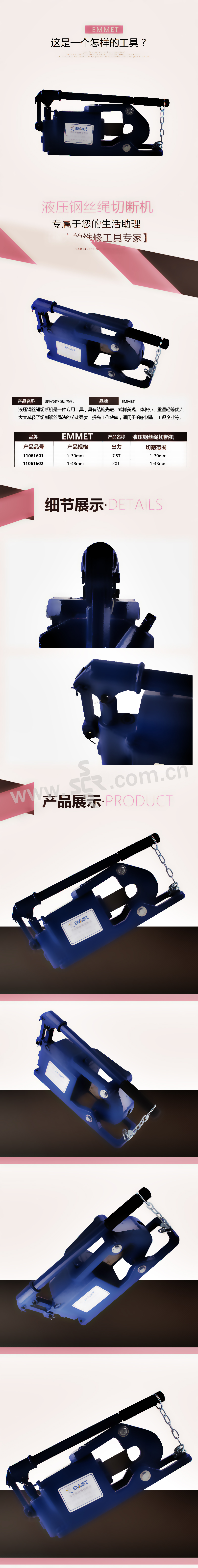 ·液压钢丝绳切断机主机由端座、座板活塞、活塞、动刀、定刀座、油缸、外壳、泵体、拉臂等零件组成,利用液压传动原理,驱动刀向外伸出进行切割。广泛用于船舶修造,工矿,吊装等部门,该产品体积小,重量轻。切口平整,无毛棘、工效高。