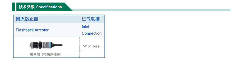 ·快速连接、切断气源使用方便快捷 ·微孔散热型火焰熄灭装置确保熄灭倒流火焰 ·气体单向阀在发生回火后瞬间自动切断气源 ·具有自动复位功能,可连续作业
