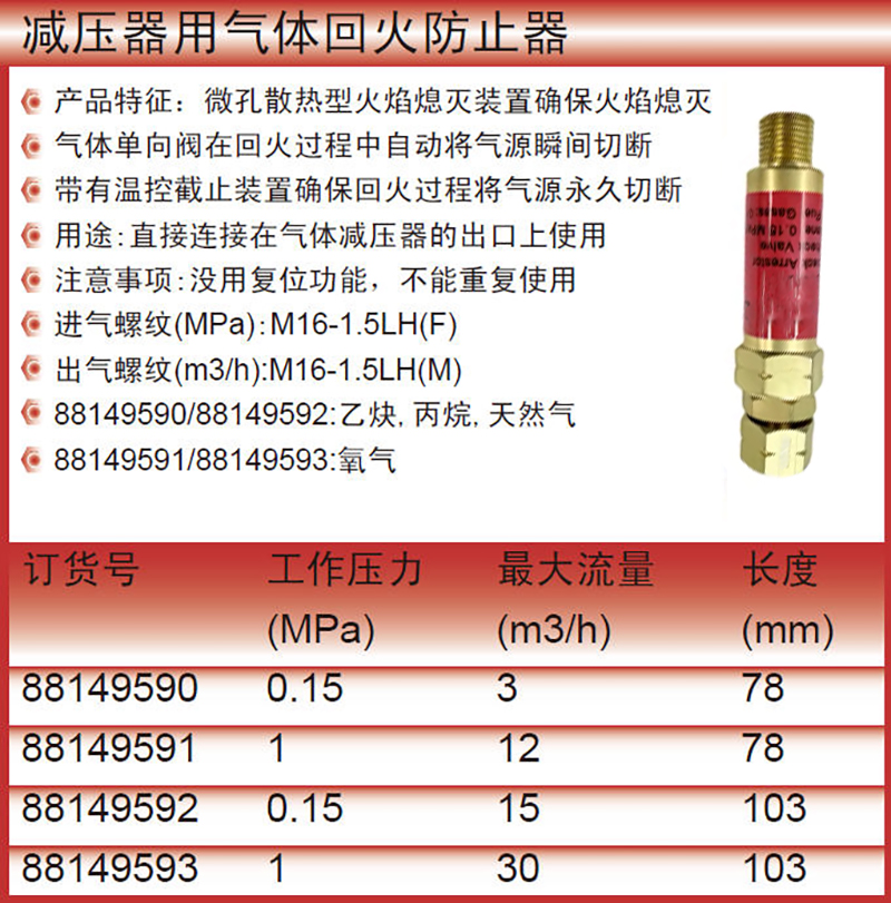 ·气体单向阀在回火过程中自动将气源瞬间切断