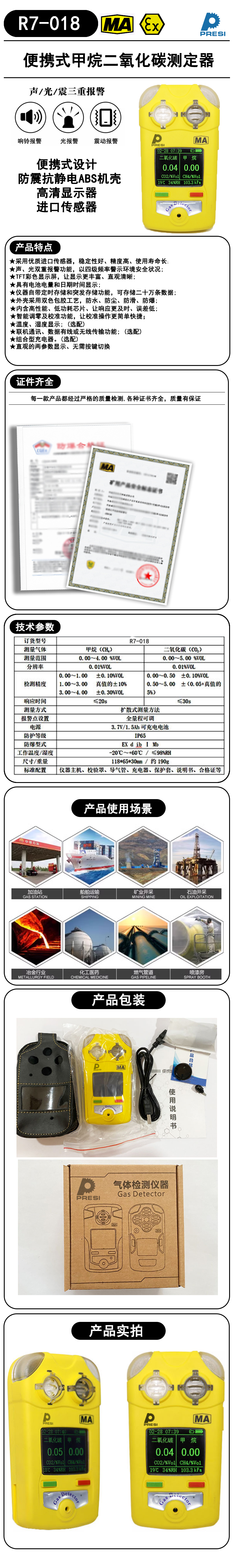 规格:  甲烷:0.00~4.00%VOL二氧化碳:0~5.00%VOL 制造商型号:  R7-018