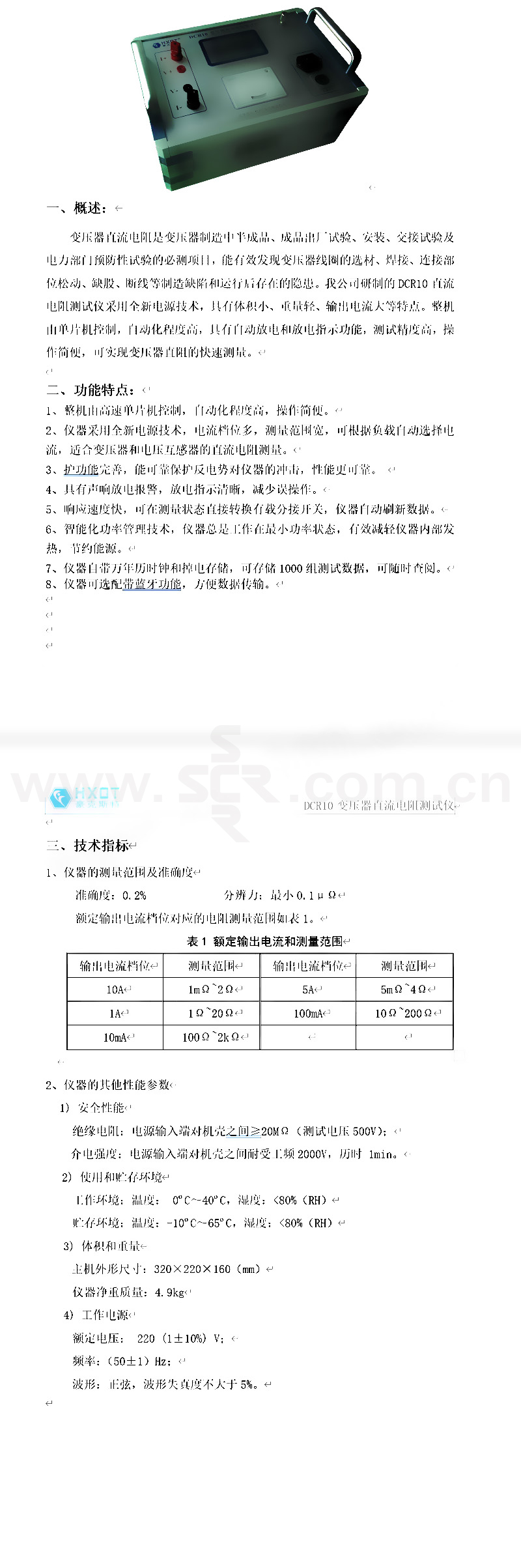 HXOT/豪克斯特 变压器直流电阻测试仪 DCR10 10A 1套