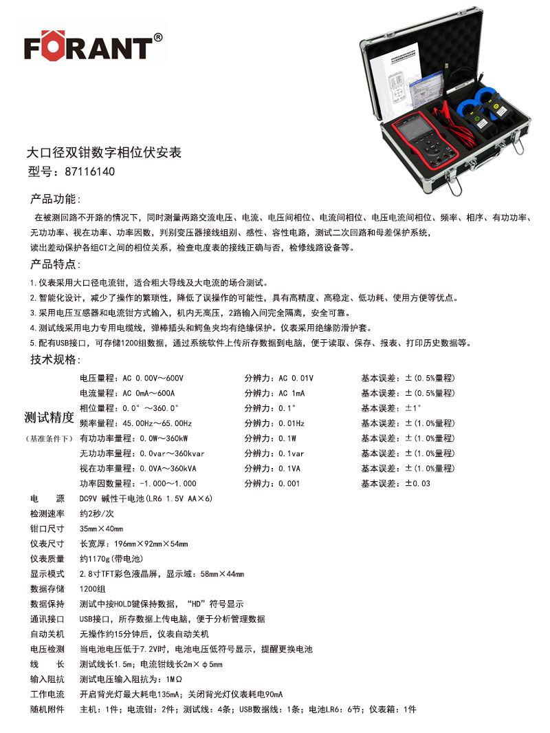 ·相位、交流电流、交流电压、交流漏电流、相序直接测试; ·变压器组别、感性、容性电路判别; ·功率因数、功率间接测试