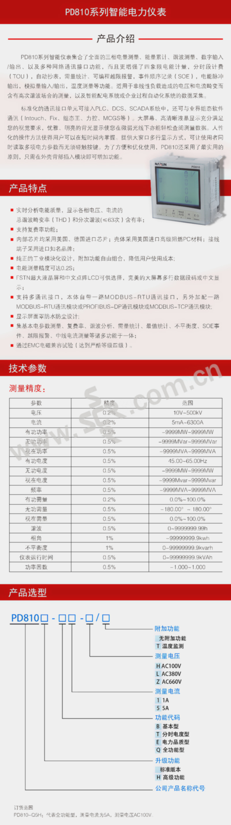 NARUN/纳宇电气 PD810系列智能电力仪表 PD810-E(DS) 电能质量型 1台