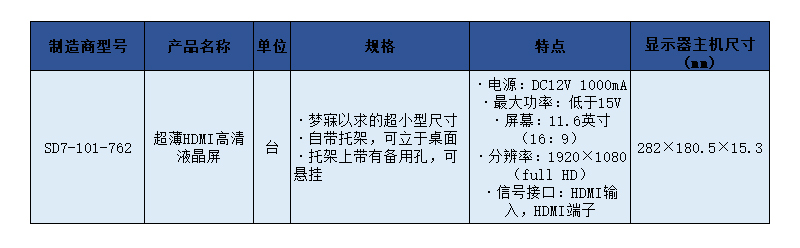 SLAMED 超薄HDMI高清液晶屏 ZTB-GR116-PT-S SD7-101-762