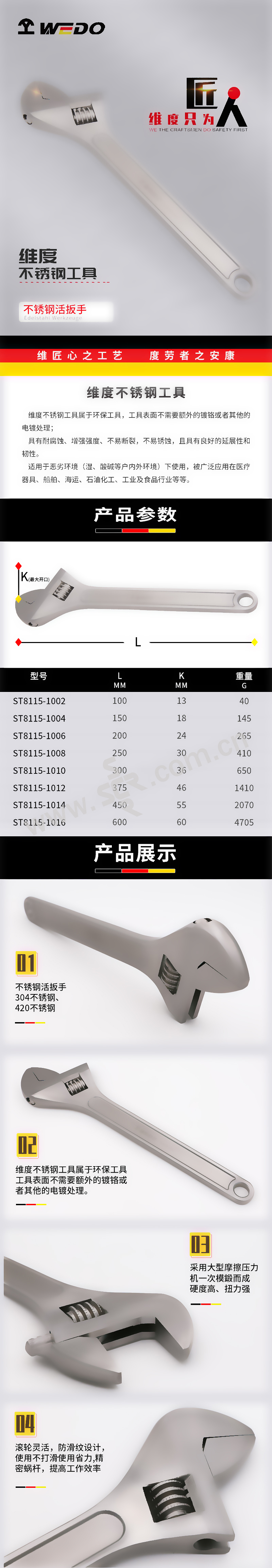 WEDO/维度 304不锈钢活扳手 ST0304-8115-1002 13×100mm 1把