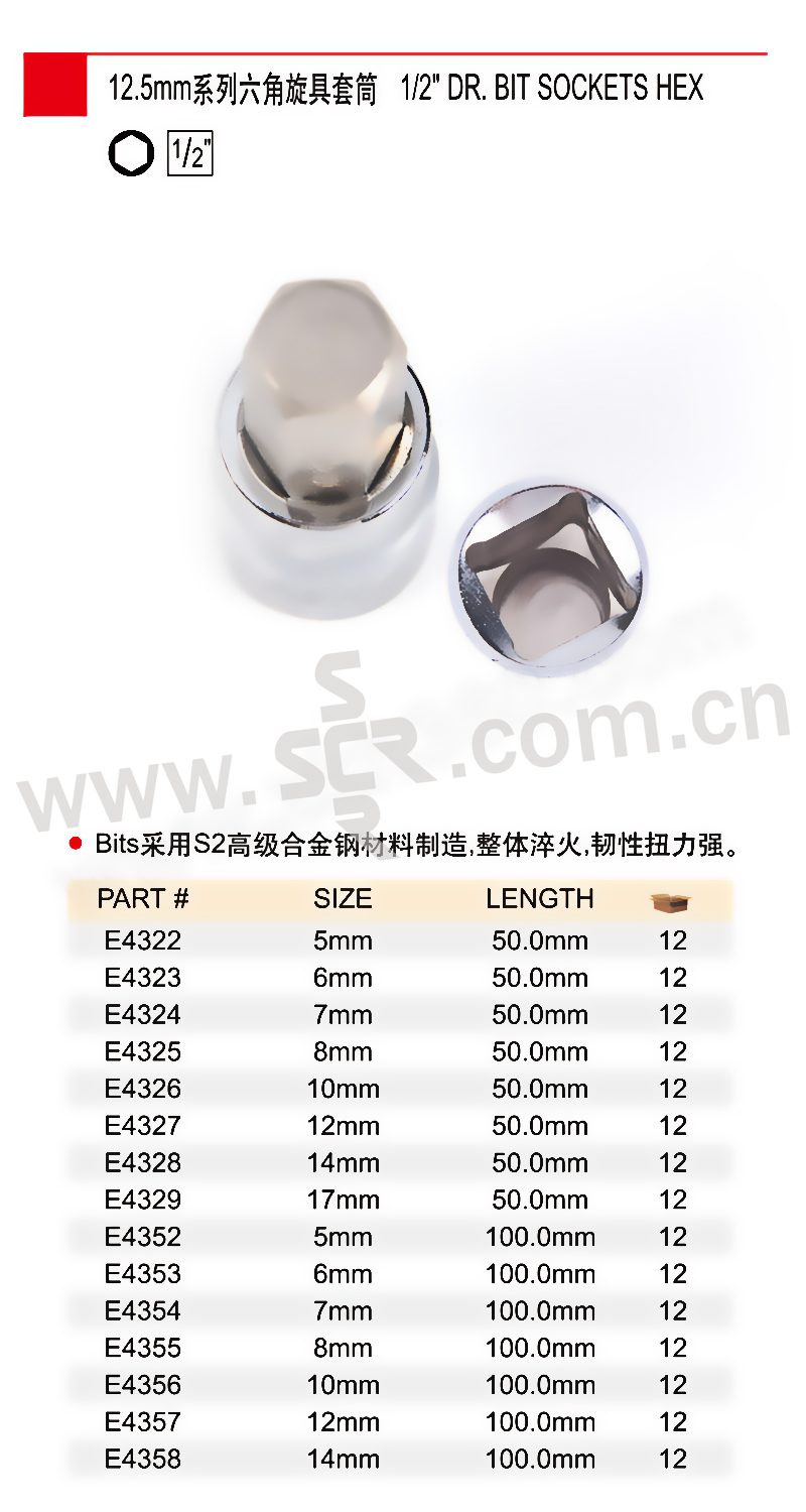 ENDURA/力易得 1/2系列12.5mm六角旋具套筒 E4322 5mm 1个