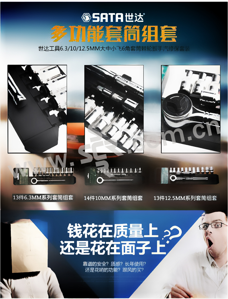 SATA/世达 10mm系列公制套筒组套 SATA-09523(升级款) 14件 1套