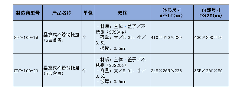 SLAMED 叠放式不锈钢托盘(5层含盖) 5L SD7-100-19