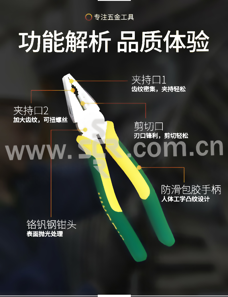 ·钳体采用优质高碳钢精工锻造,坚固耐用。