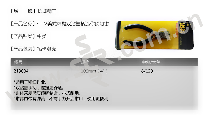 GREATWALL/长城精工 CR-V美式精抛双沾塑柄迷你顶切钳 GW-219004 100mm(4") 1把