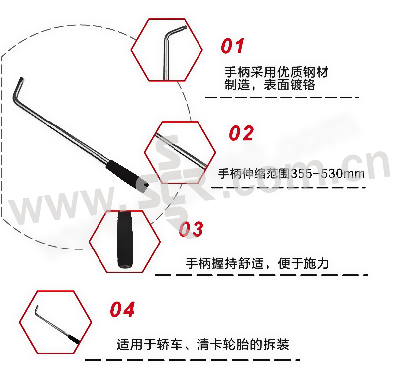 SHEFFIELD/钢盾 伸缩轮胎扳手 S117004 1/2" 355-530mm 1套