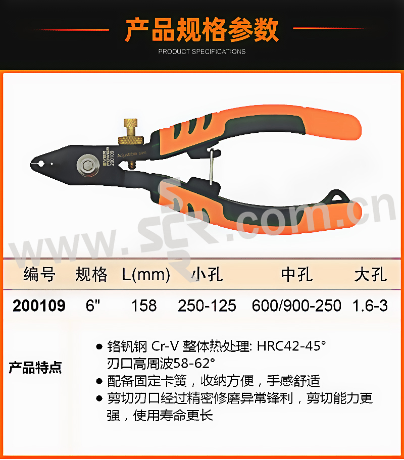 EVERPOWER/艾威博尔 P系列精密光纤剥线钳 200109 6" 158mm 三孔型 1把