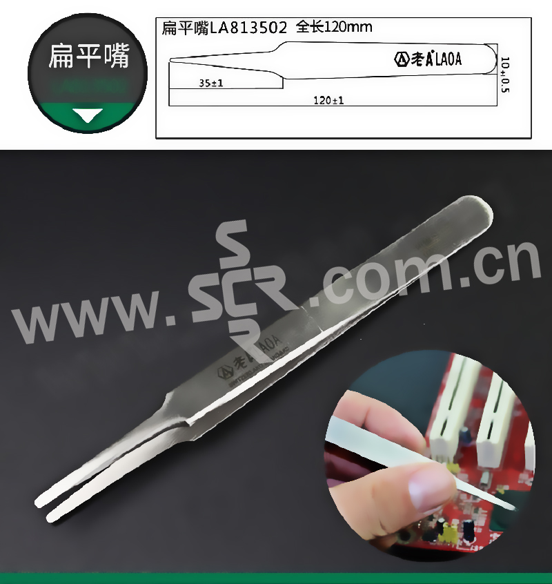 LAOA/老A 302不锈钢扁平嘴镊子 LA813502 10.1×120mm 1个
