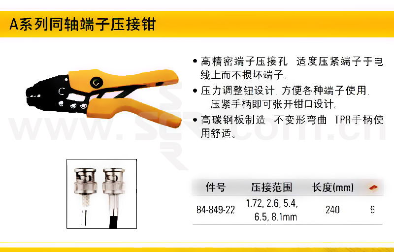 STANLEY/史丹利 A系列同轴端子压接钳 84-849-22 1.72mm 2.6mm 5.4mm 6.5mm 8.1mm 240mm 1把