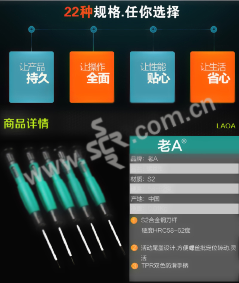 ·S2合金钢制造,硬度高,韧性好,手柄防滑设计