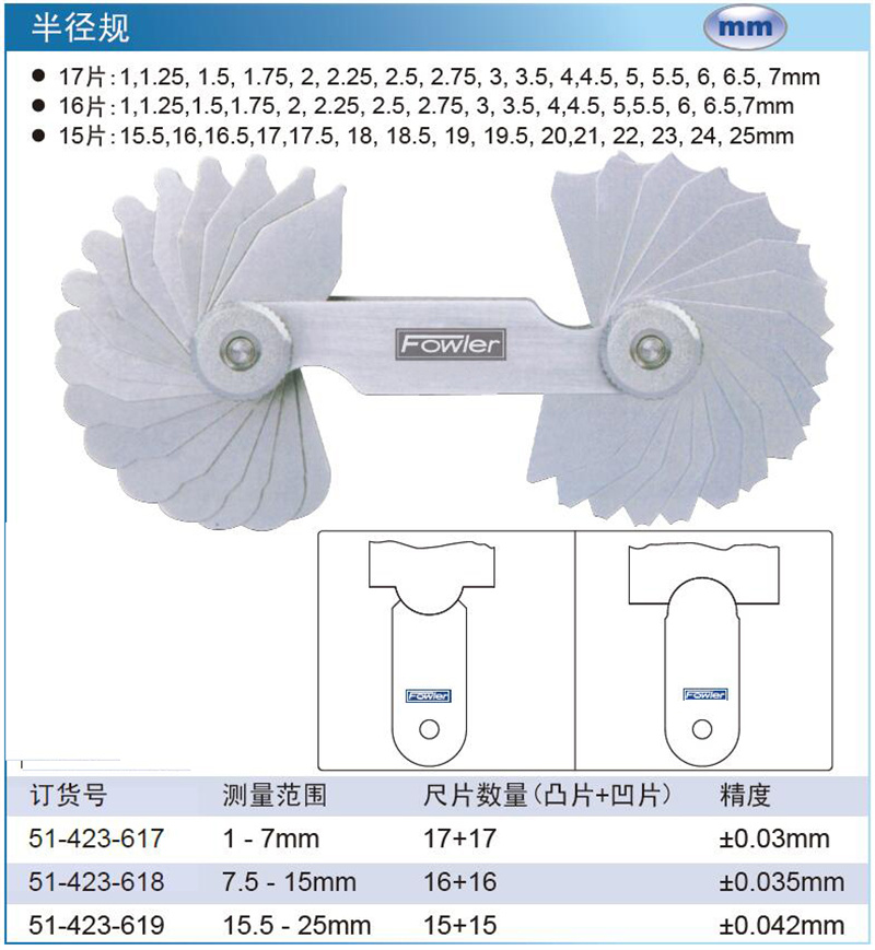 ·17片:1,1.25, 1.5, 1.75, 2, 2.25, 2.5, 2.75, 3, 3.5, 4,4.5, 5, 5.5, 6, 6.5, 7mm