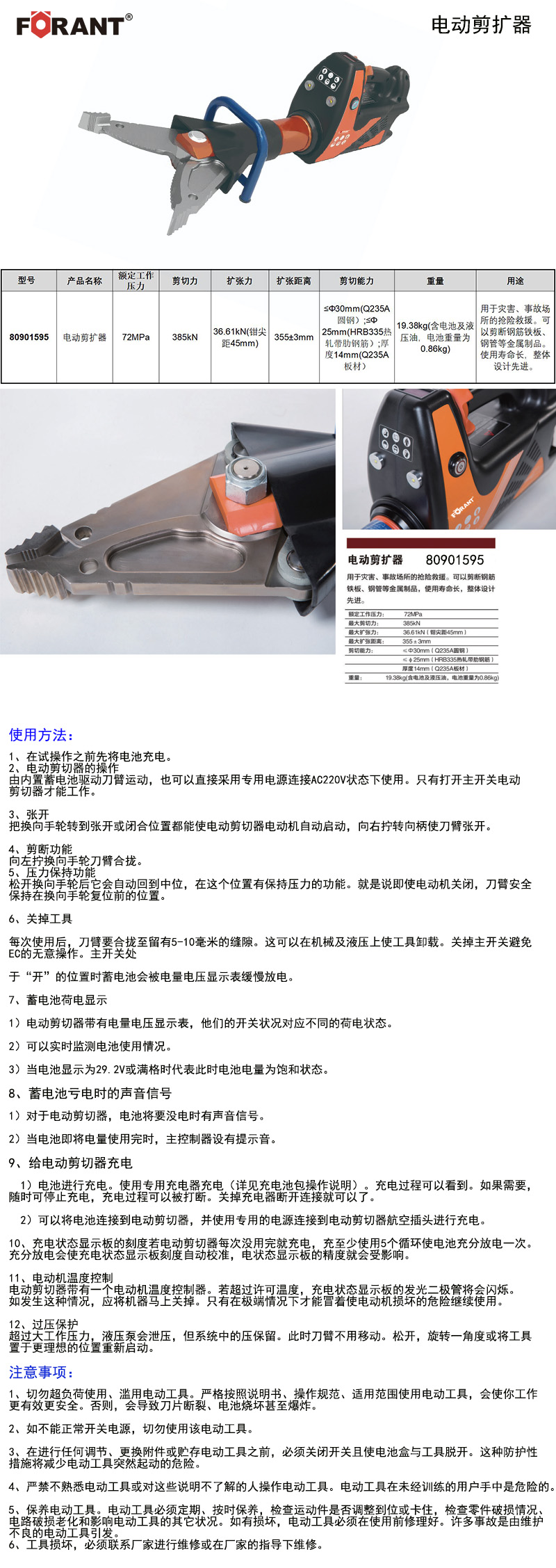 ·用于灾害、事故场所的抢险救援。可以剪断钢筋铁板、钢管等金属制品。